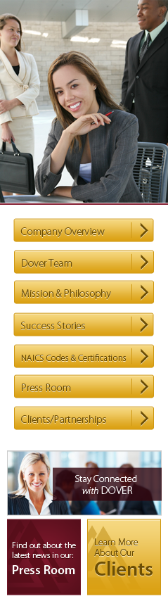 Since 1996, Dover has integrated a winning approach to business in every project awarded. At Dover, we believe that in order for a relationship to be successful, the customer, the employee and Dover must all benefit. This philosophy is a critical component to our internal mission and significantly contributed to our success and longevity.
